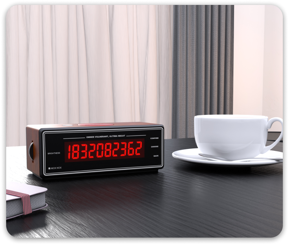 PRE-ORDER. A clock that counts down the seconds you have left to live. A modern twist on the medieval memento mori — a reminder that time is fleeting.